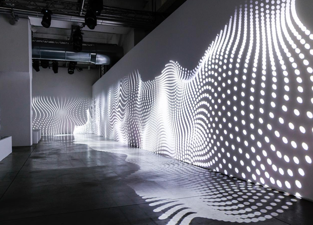 These projections, spanning the walls and floor, varied from sharp, linear designs to more organic, particle-based visuals, adding a layer of depth and energy to the overall experience.