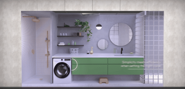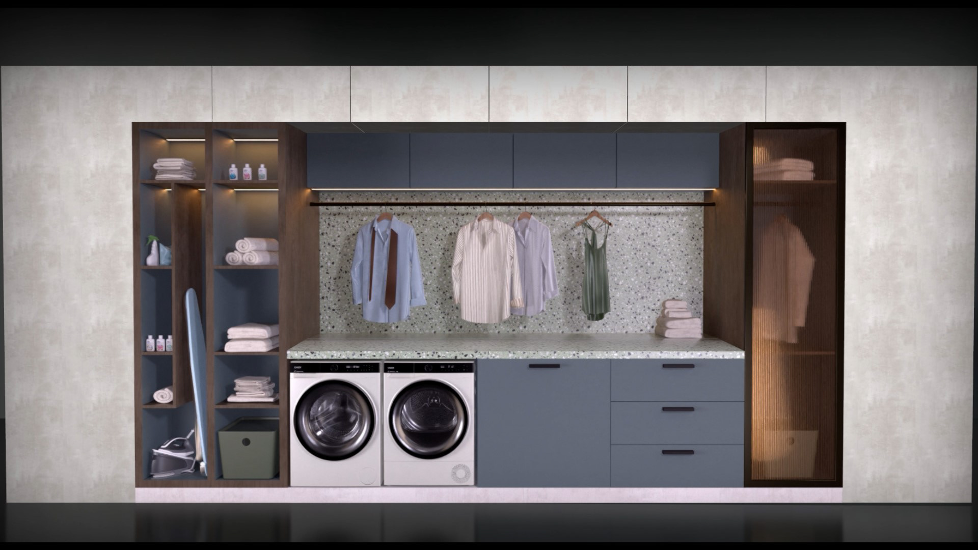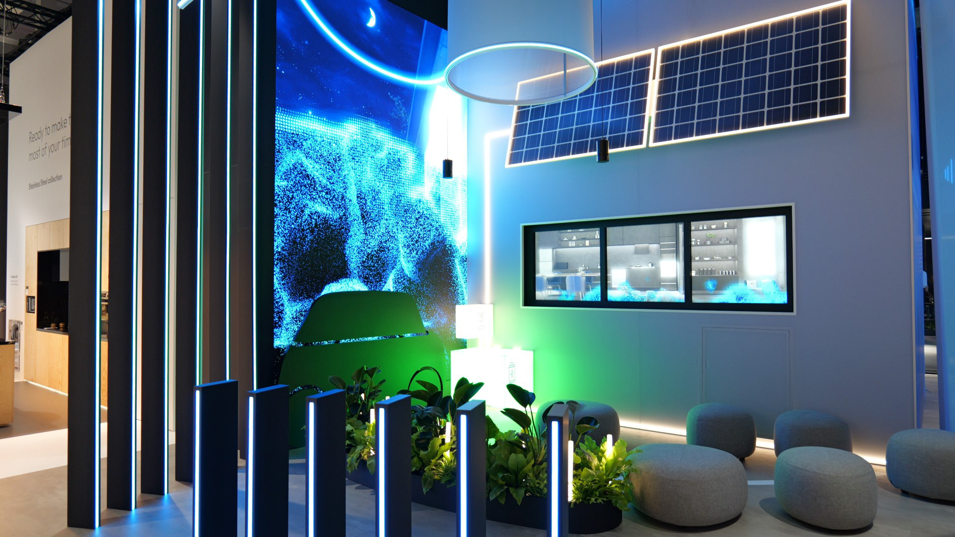 Within the Ecosystem exhibition space, two rooms of an apartment were built to simulate and showcase the experience of the Haier connected home. The appliances communicate with each other, optimize energy savings through apps, and feature self-regulating sensors for temperature and humidity. We focused on the multitude of functions offered by hOn, utilizing numerous LED wall surfaces.