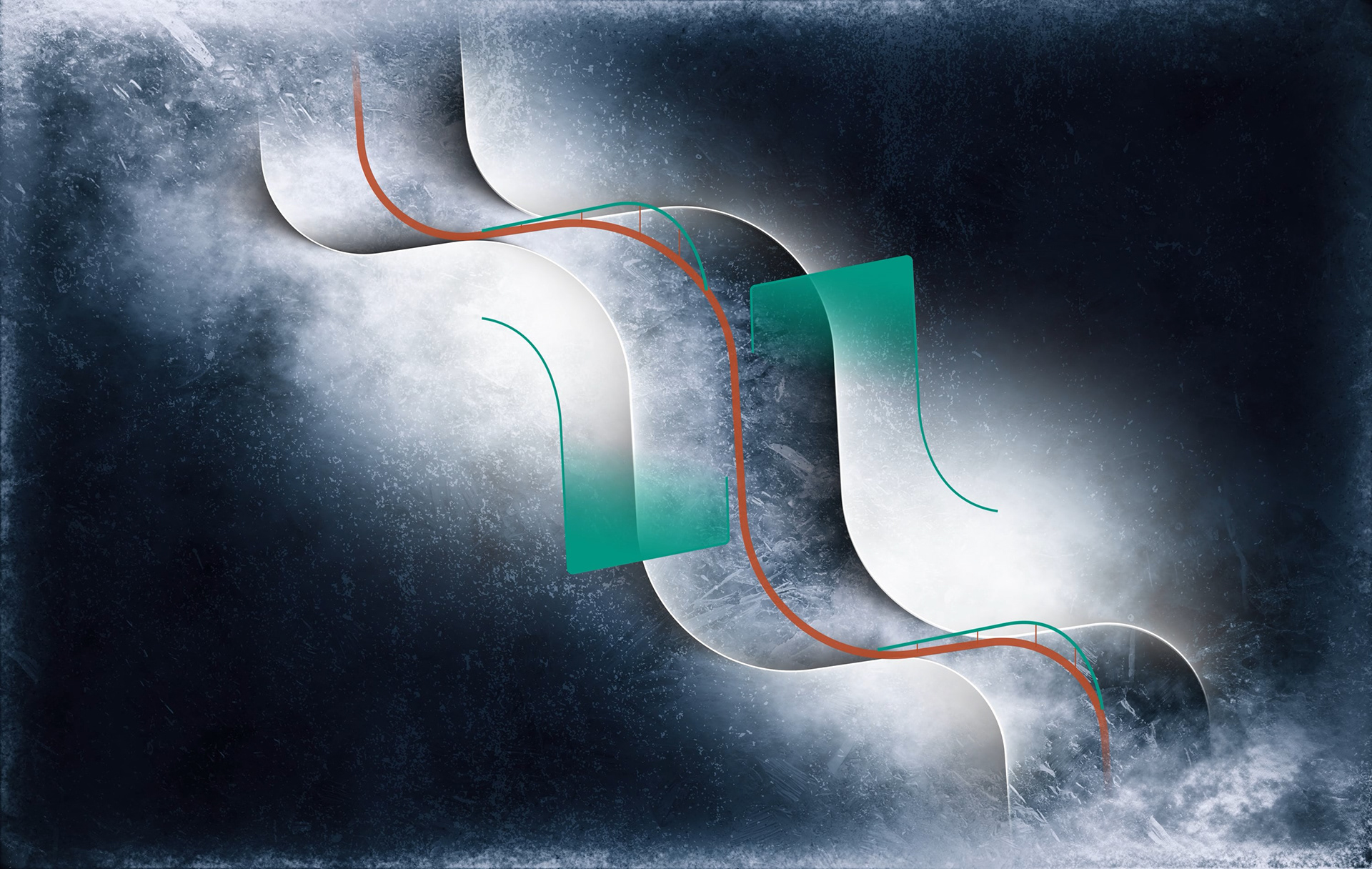 An imaginary journey unfolds, connecting Trojena to the vast Saudi desert through an icy path.