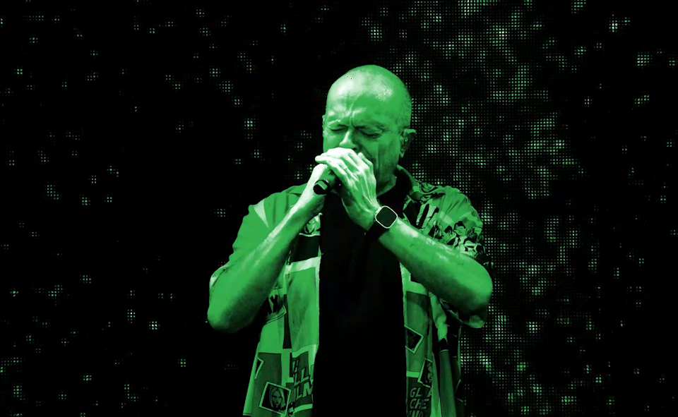 The entire visual composition was created in Notch, a real-time graphics tool that allowed for rapid iteration, flexibility, and direct integration with live camera feeds.