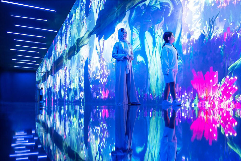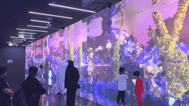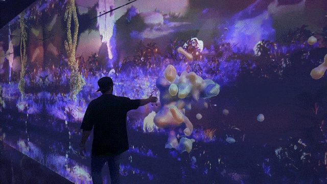 Once built, the immersive room featured a long projected wall, alternating with some sensors scattered around the wall, to create a continuous interactive area capable of covering the entire space.