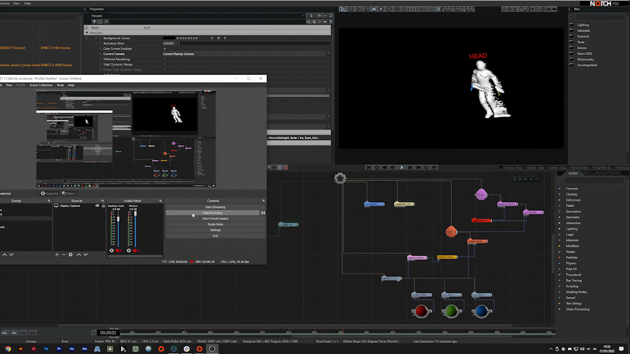 The character tracking was entirely managed by depth sensors that obtained the skeleton in real-time, to which were added parameters that varied based on the speed of the movements and the distance.