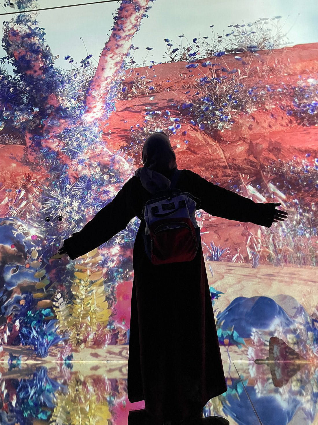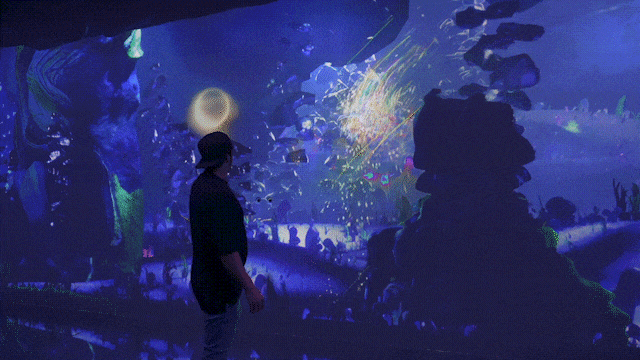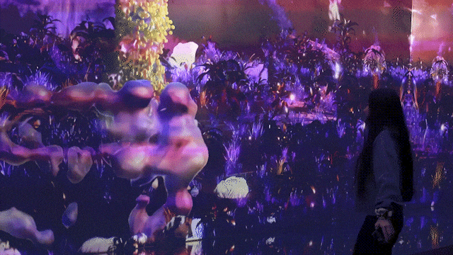 A fantasy and alien world defined the environmental style of Outland, as the public passed by, alien avatars were generated, composed of elements that recalled the elemental background. Different Seasons defined the various moments of the interactive installation, all with a unique style and always different generative characters. The whole thing was composited by a real-time layer generated in Notch and the pre-rendered backgrounds.