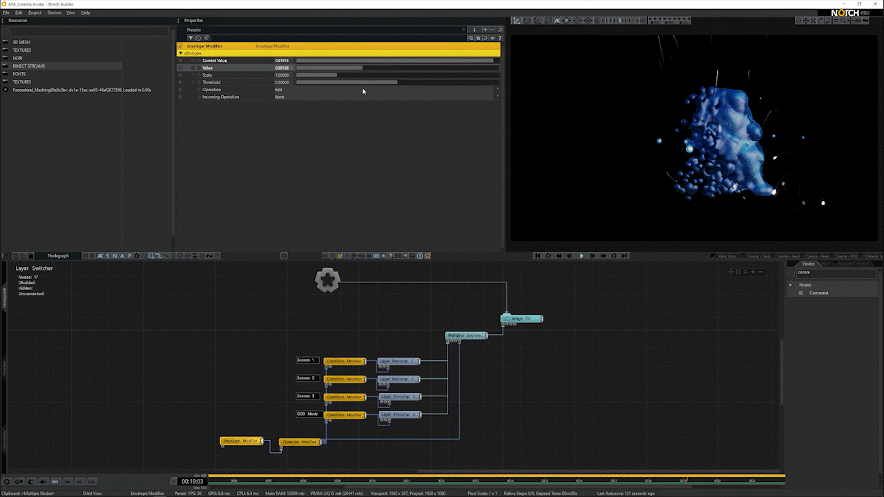Different variants of the Avatars were designed for each Season, each of which took elements and lights from the background with various interactive elements. All possible systems were used, from the generation of procedural blobs to particles to simulate waves of light, clones to emanate petals, and the deformations of the video content that defined the backgrounds.