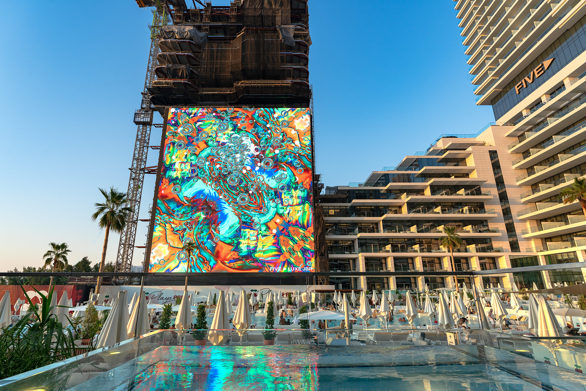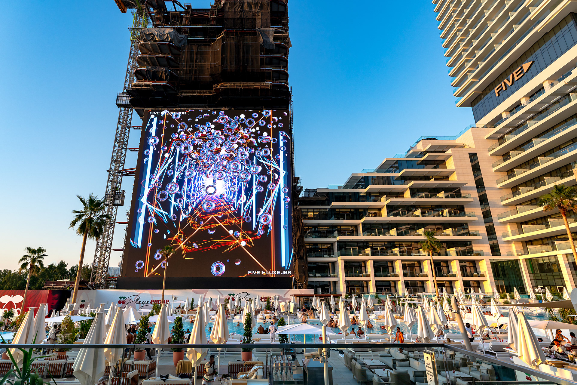 Expanding the legendary Pacha Ibiza experience to new horizons, I had the opportunity to bring the iconic club’s visual magic to Pacha Playa Dubai, part of the luxurious FIVE Luxe resort. Tasked with transforming the poolside area into a vibrant, immersive destination, I reimagined the interactive visuals for a massive LED screen overlooking the pool, blending the energy of Ibiza with the opulence of Dubai.