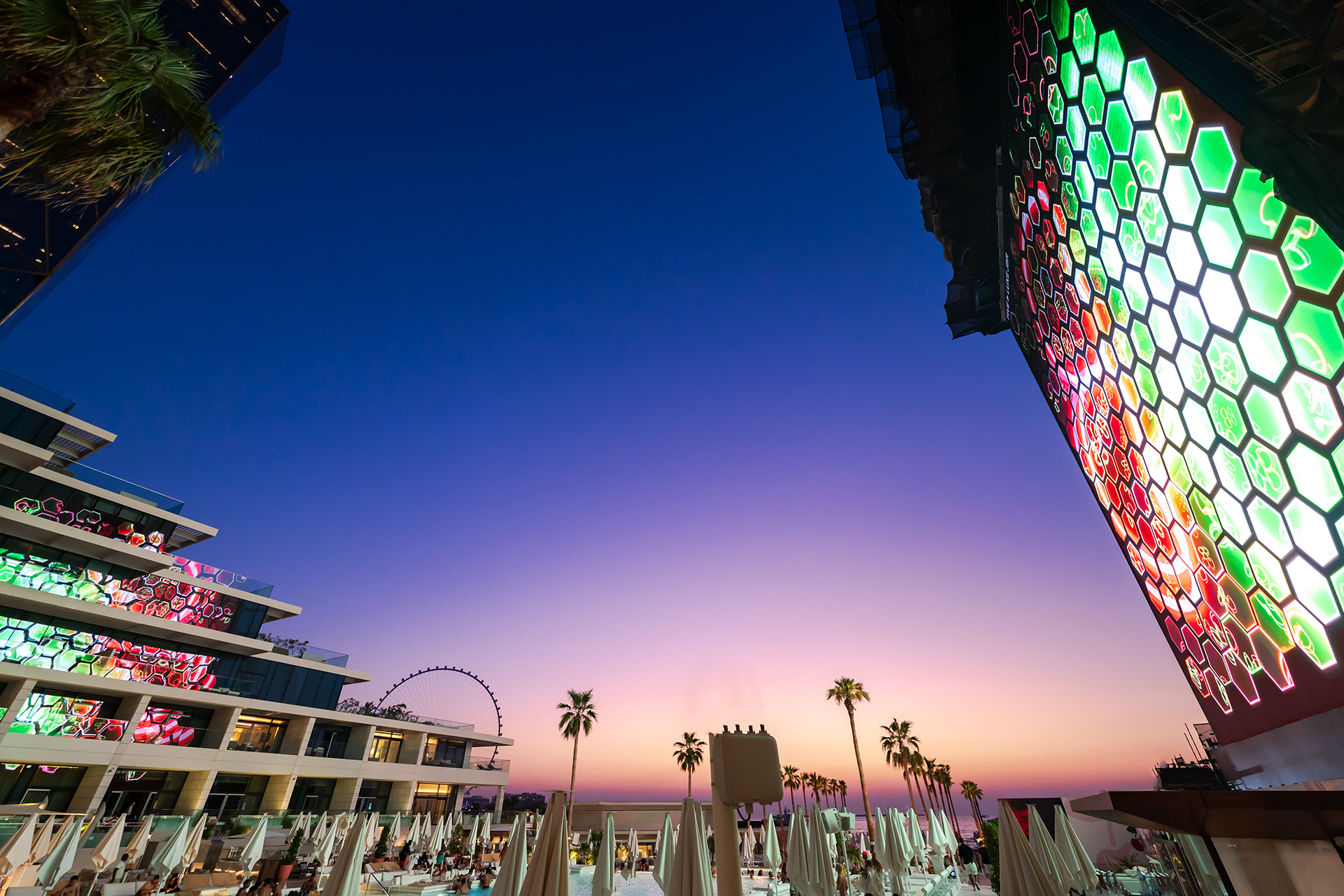 The massive LED screen at Pacha Playa Dubai became the canvas for these visuals. Positioned to dominate the poolside view, the screen acted as both an artistic centerpiece and an interactive element that elevated the atmosphere. The visuals responded dynamically to music and lighting, creating a seamless fusion of technology, art, and environment; all managed by a powerfull Pixera system.