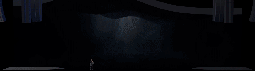 For the waterfall visual, we worked with fluid simulations, created using C4D and Xparticles. Inside a cave, the live feed of Tiziano is projected onto the 3D mesh of the waterfall, using Notch.